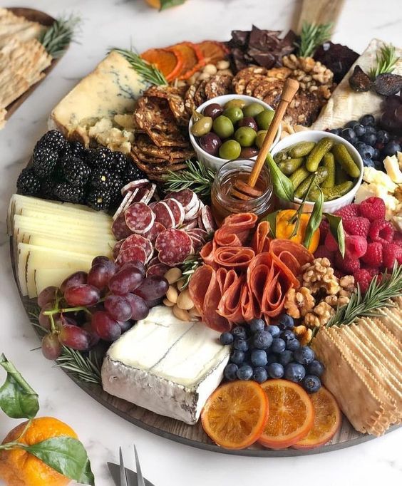- Seleção de azeitonas, frutos secos, frutas e pimentos pickles.